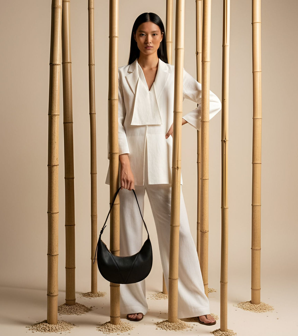 River Vegan Bio-Based Bamboo Leather Hobo Bag in Black
